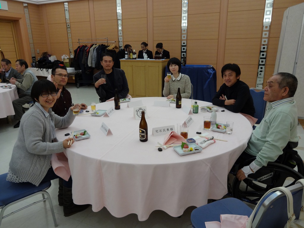 18時から開催された平成26年度千葉県支部忘年会には41名が参加。飯塚関東甲信ブロック会長の乾杯の音頭で始まり、中華やお刺身などに舌鼓。支部恒例の大ビンゴゲーム大会では、数字が発表されるたびに一喜一憂し大盛り上がりでした。
